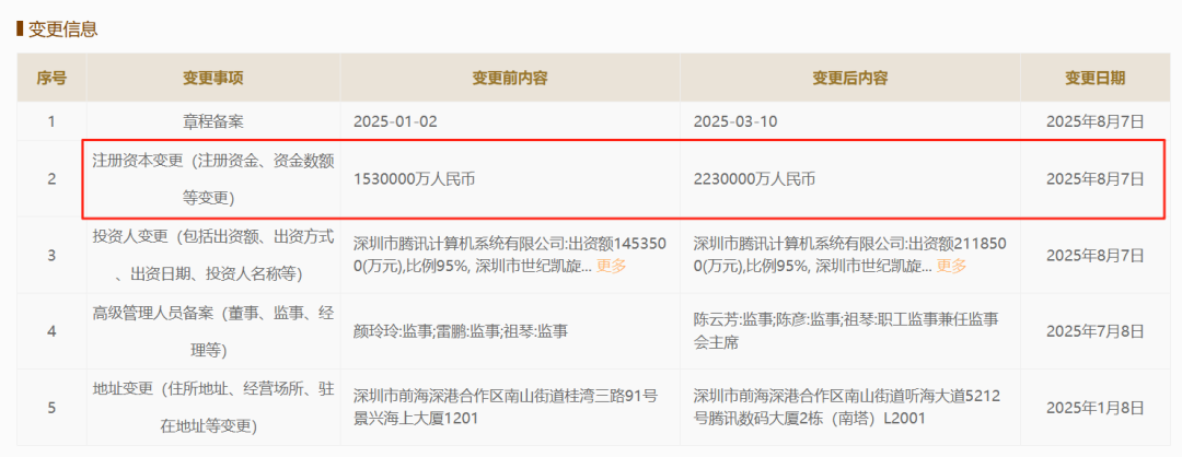 文章來(lái)源:四九八網(wǎng)絡(luò)發(fā)布時(shí)間:2025-08-12 09:09:33熱度:224據(jù)國(guó)家企業(yè)信用信息公示系統(tǒng)顯示,財(cái)付通支付科技有限公司于2025年8月7日完成注冊(cè)資本變更,從153億元增至223億元,增幅達(dá)45.75%。